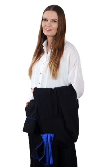 Radca prawny wpisany na listę Okręgowej Izby Radców Prawnych w Warszawie (WA-16557), absolwentka Wydziału Prawa i Administracji Uniwersytetu Łódzkiego